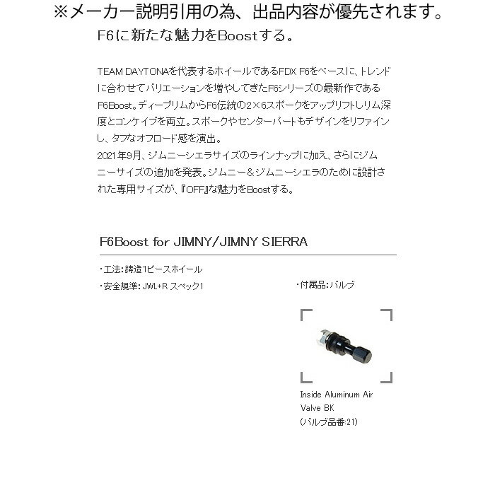 □適合車種車種名・ジムニーシエラ型式・JB74Wその他適合条件1・ホイールはフェンダーギリギリサイズですその他適合条件2・純正車高では装着出来ません。その他適合条件3・車高アップや接触部分カット等の対策が必要です。□出品商品ホイールメーカー・RAYS (レイズ)商品名・F6 BOOSTサイズ・16×6.0J-5 5H 139.7カラー・セミグロスブラック(N1)出品本数・4本タイヤメーカー・ヨコハ...