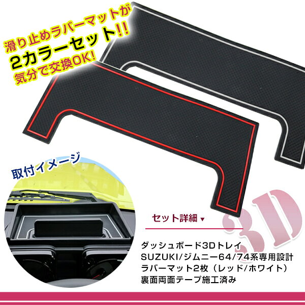 【送料無料】 スズキ ジムニー ジムニーシエラ JB64 JB74 ダッシュボードトレイ レッド&ホワイト ラバーマット付き モバイルスタンド 小物置き